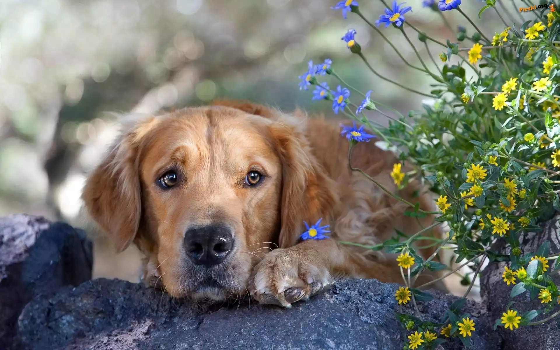 Pies, Łapa, Kwiaty, Pieski