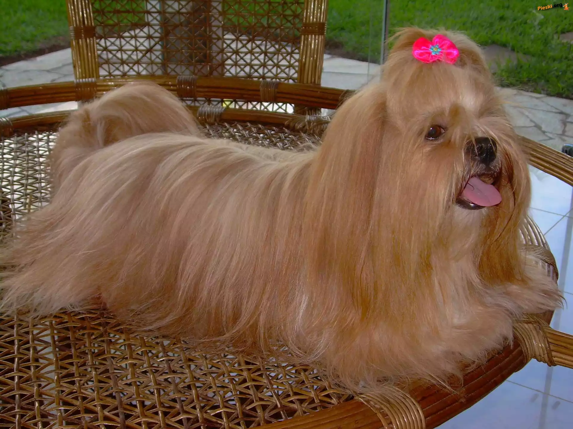 Lhasa Apso, kokardka Malutki piesek, Lhasa Apso Pies, Różowa, Gerbera, Lhasa Apso Lana Del Rey, Pies, Lhasa Apso wyczesany, Lhasa Apso
