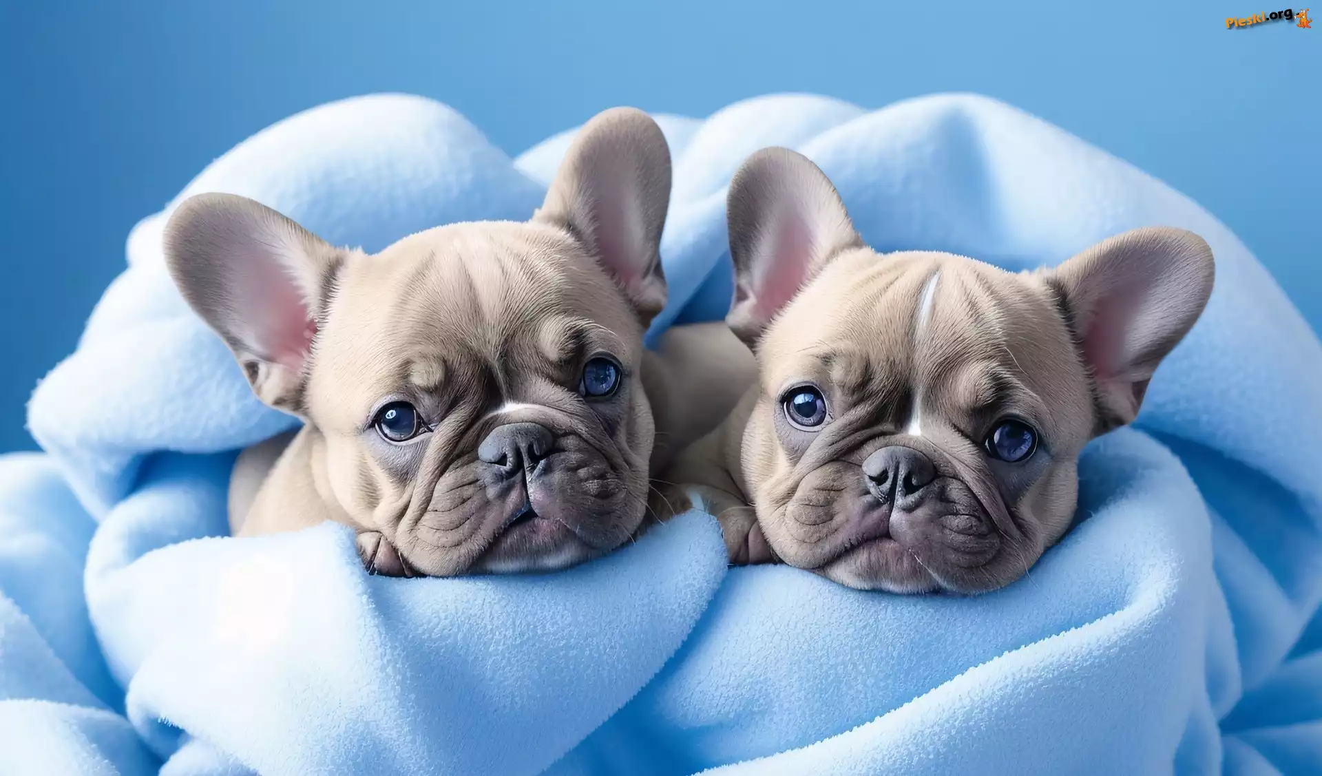 Szczeniaki, Koc, Psy, Błękitny, Buldog francuski