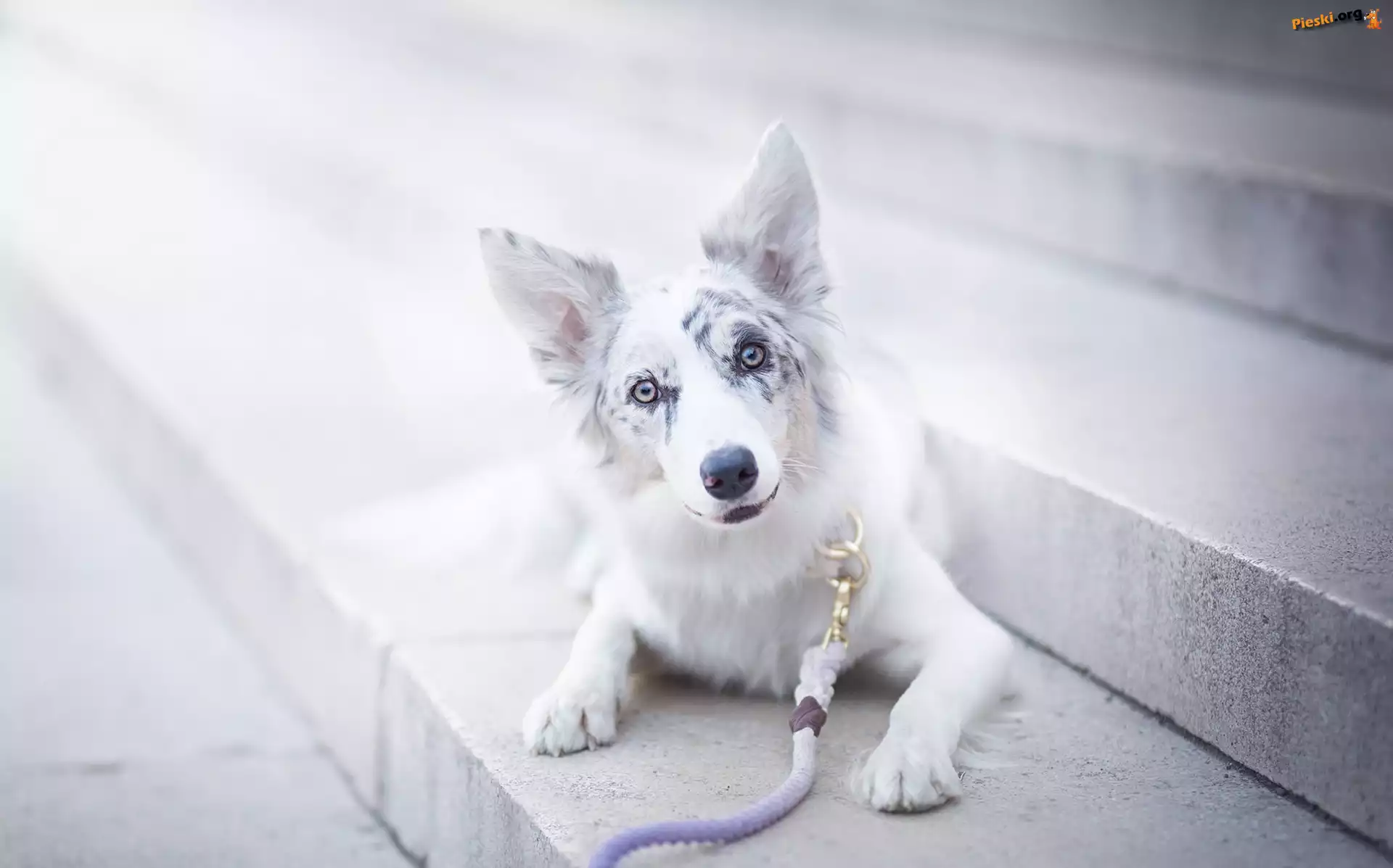 Border collie, Smycz, Schody, Pieski