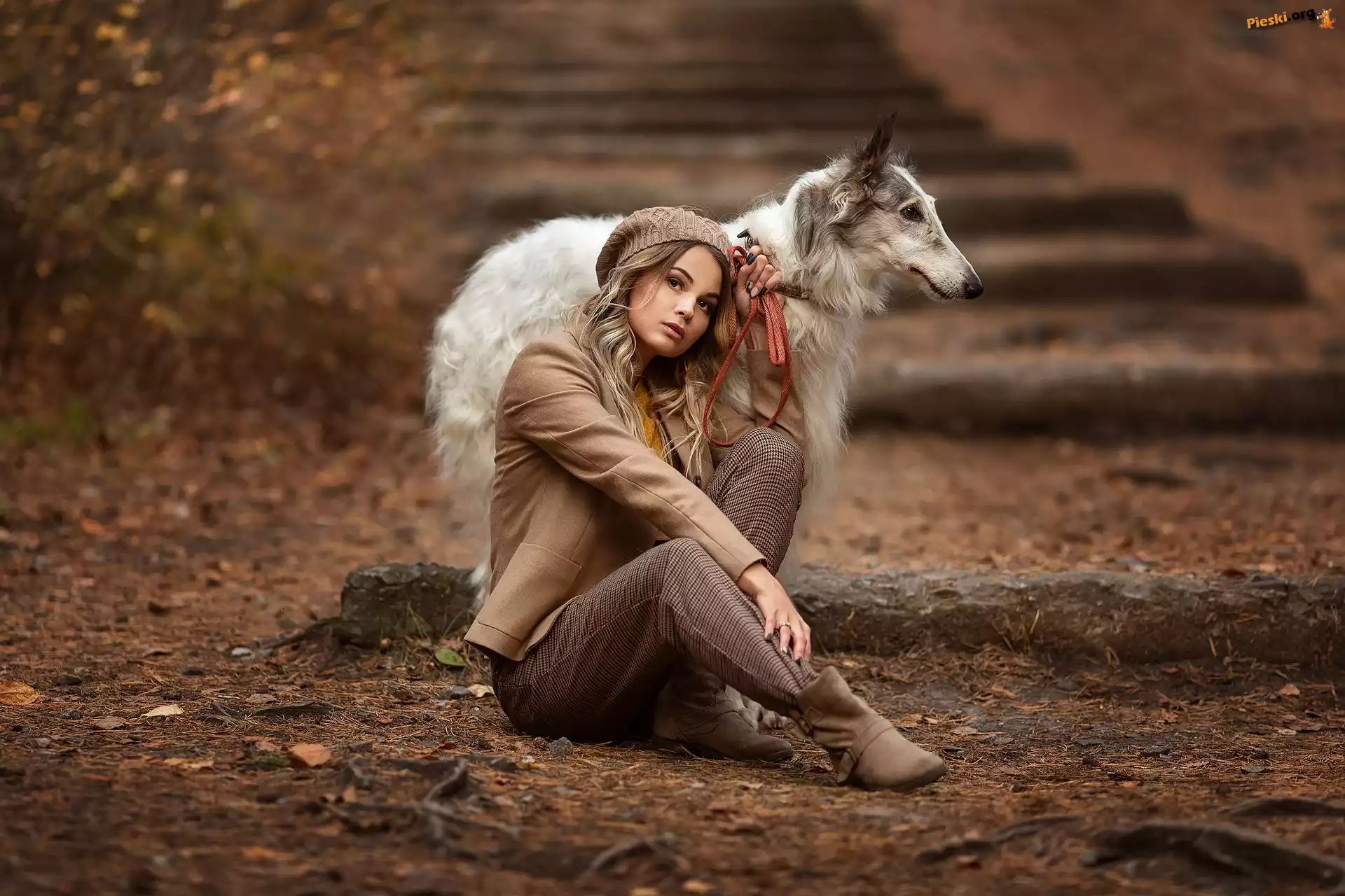 Borzoj, Kobieta, Pies, Chart rosyjski Pies, Chart rosyjski, Borzoj Charty, Rosyjskie Psy, Blondynka, Kobieta, Dwa, Charty rosyjskie borzoj Rosyjski, Pies, Chart, Borzoj