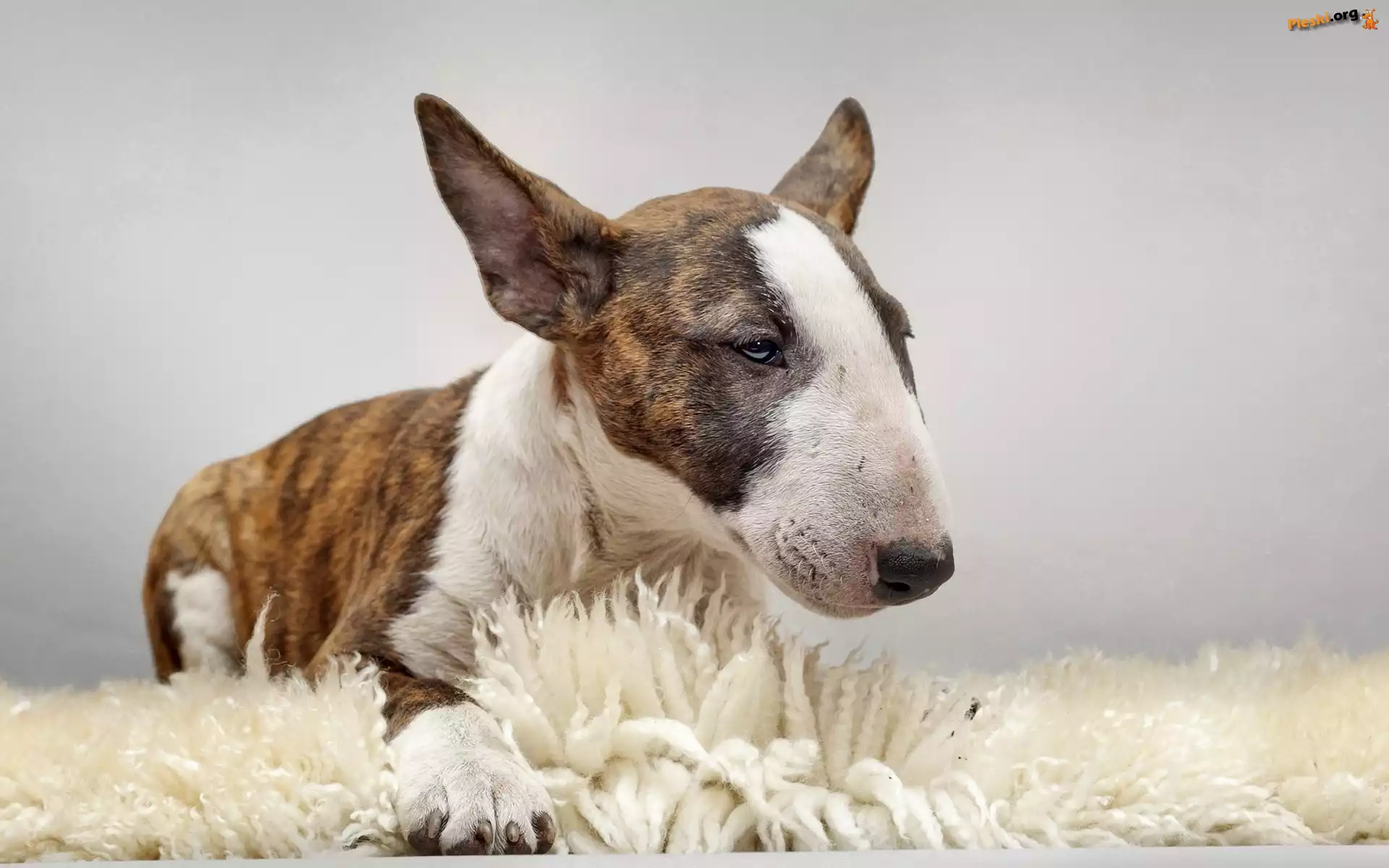 Pies, Bulterier, Dywan, Pieski