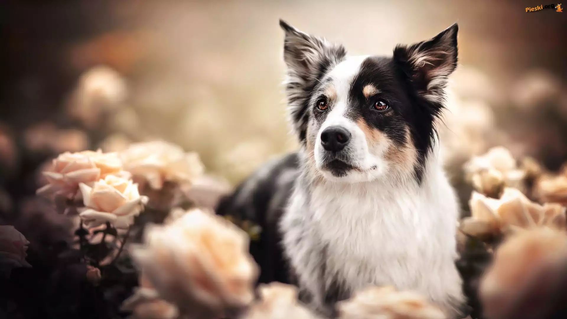 Róże, Czarno-biały, Pies, Owczarek australijski, Rozmycie, Pieski