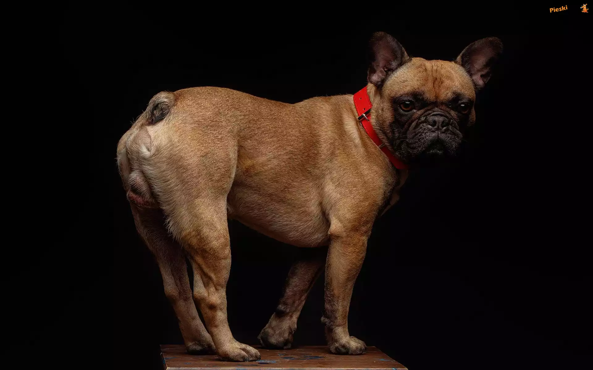 Czerwona, Pies, Buldog francuski, Obroża, Pieski
