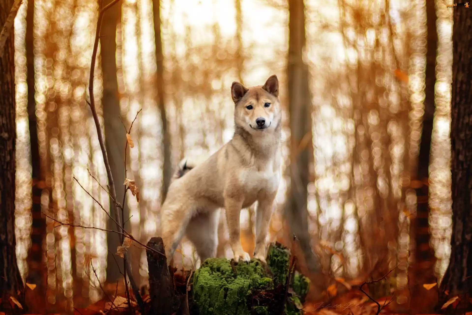 Drzewa, Pies, Shiba inu, Las, Pieski