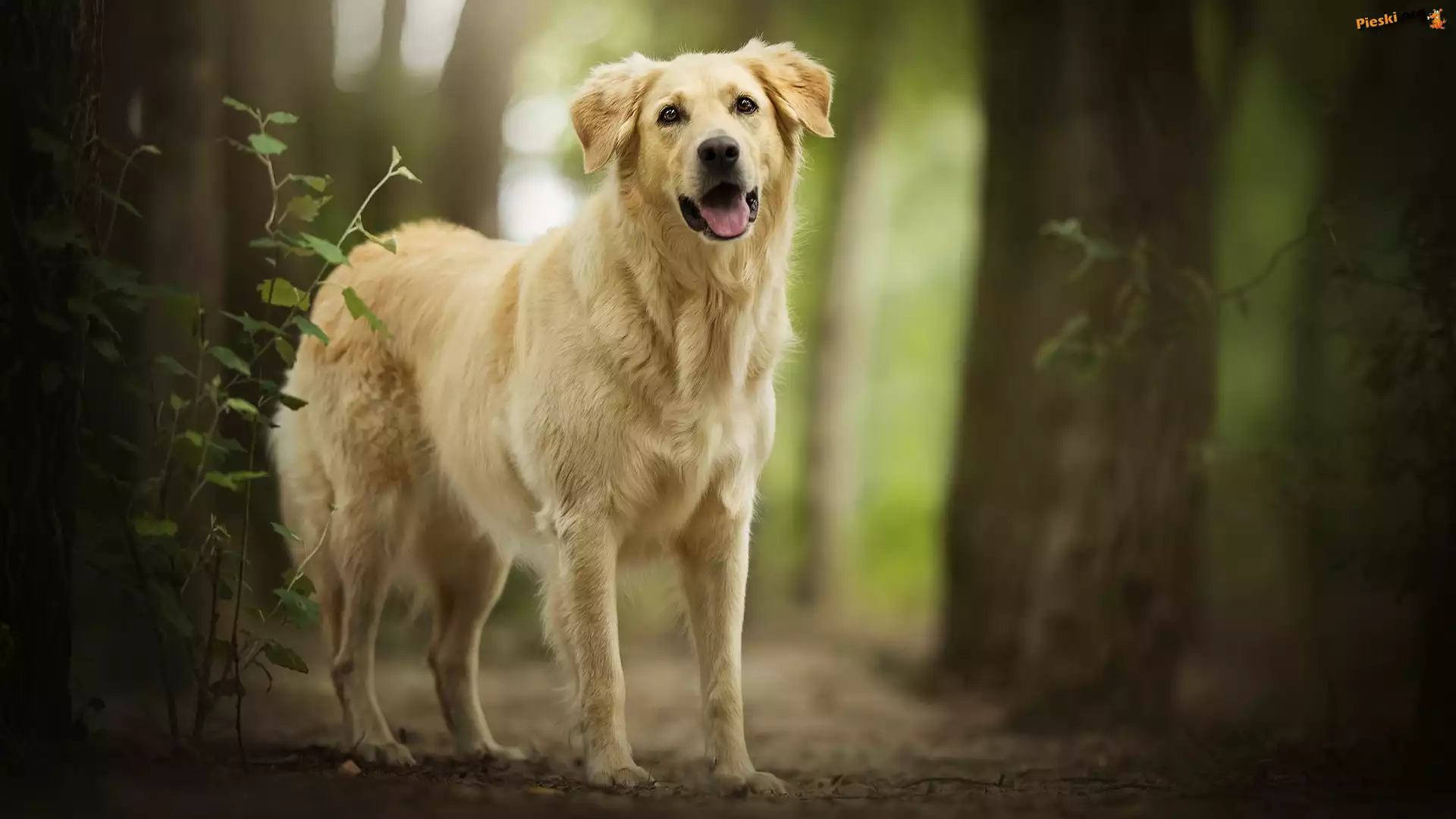 Drzewa, Pies, Golden retriever, Las, Pieski