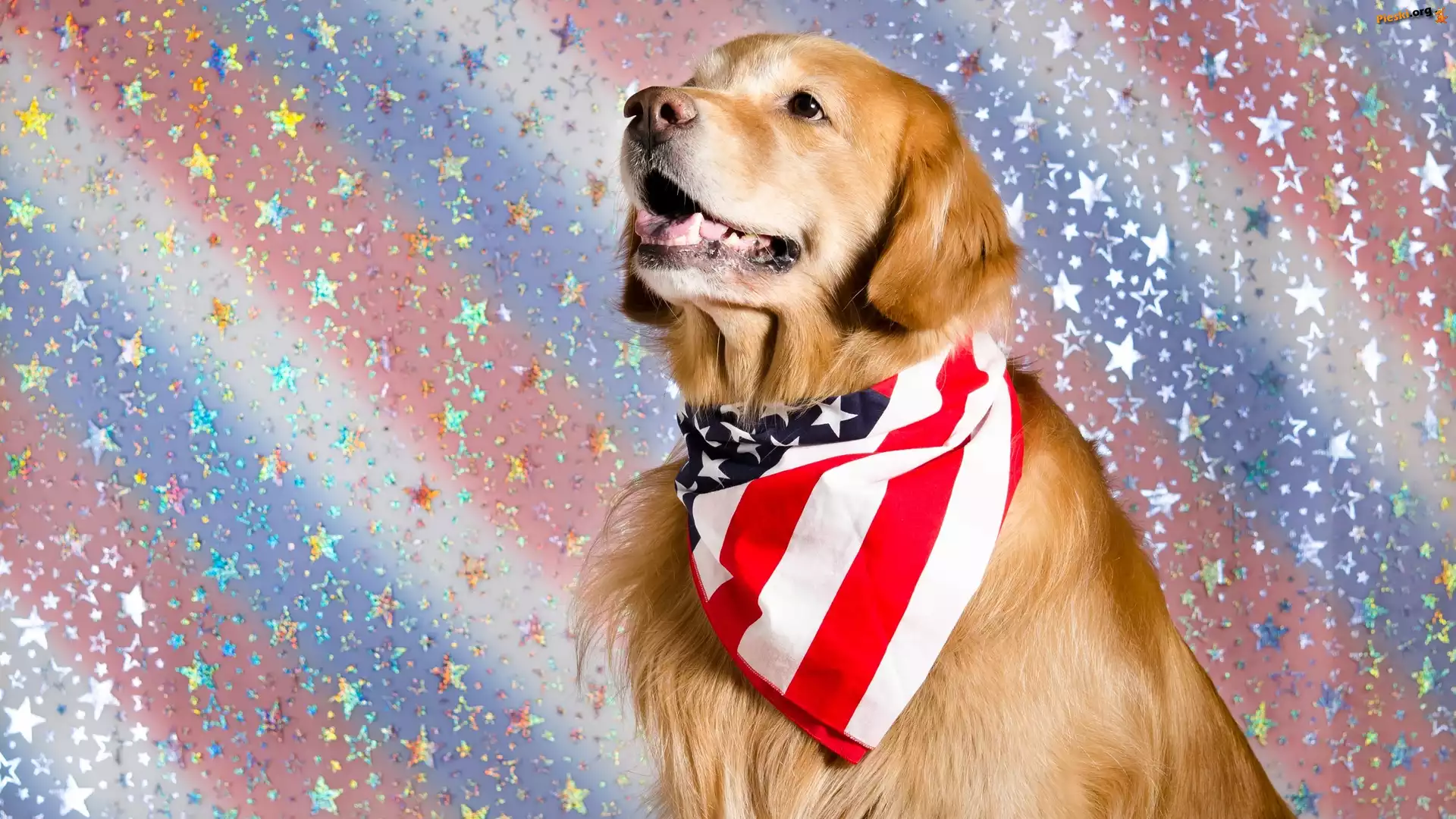 Chusta, Golden retriever, Pies, Mordka, Kolorowe tło, Pieski