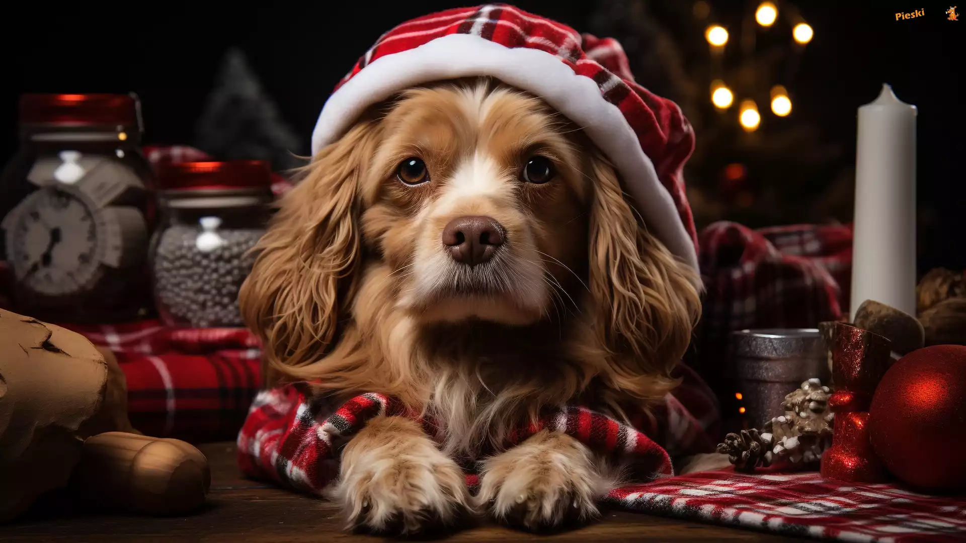 Świeca, Pies, Szczeniak, Grafika, Szalik, Czapka, Pieski