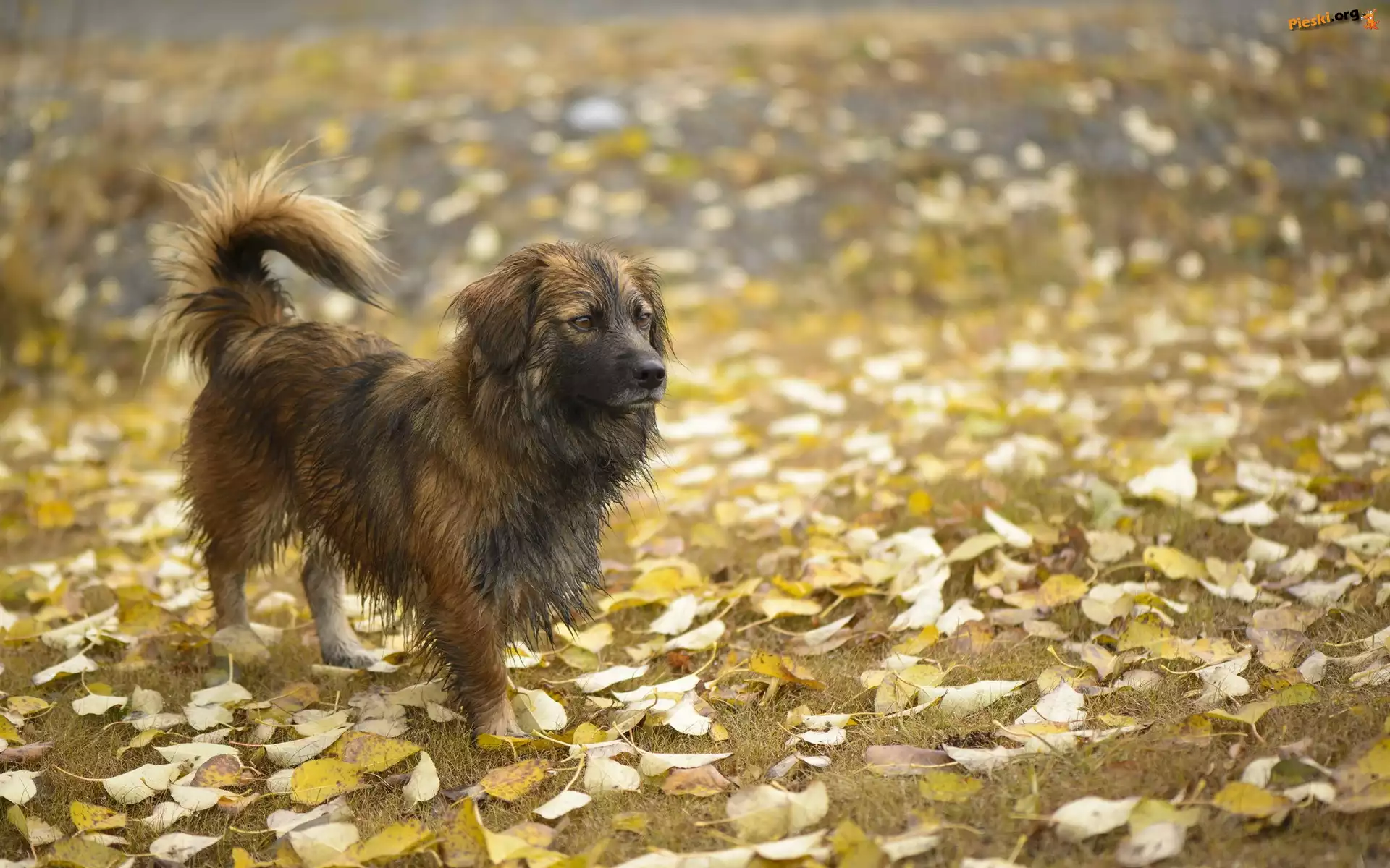 Liście, Łąka, Kundelek, Jesienne, Pies, Pieski