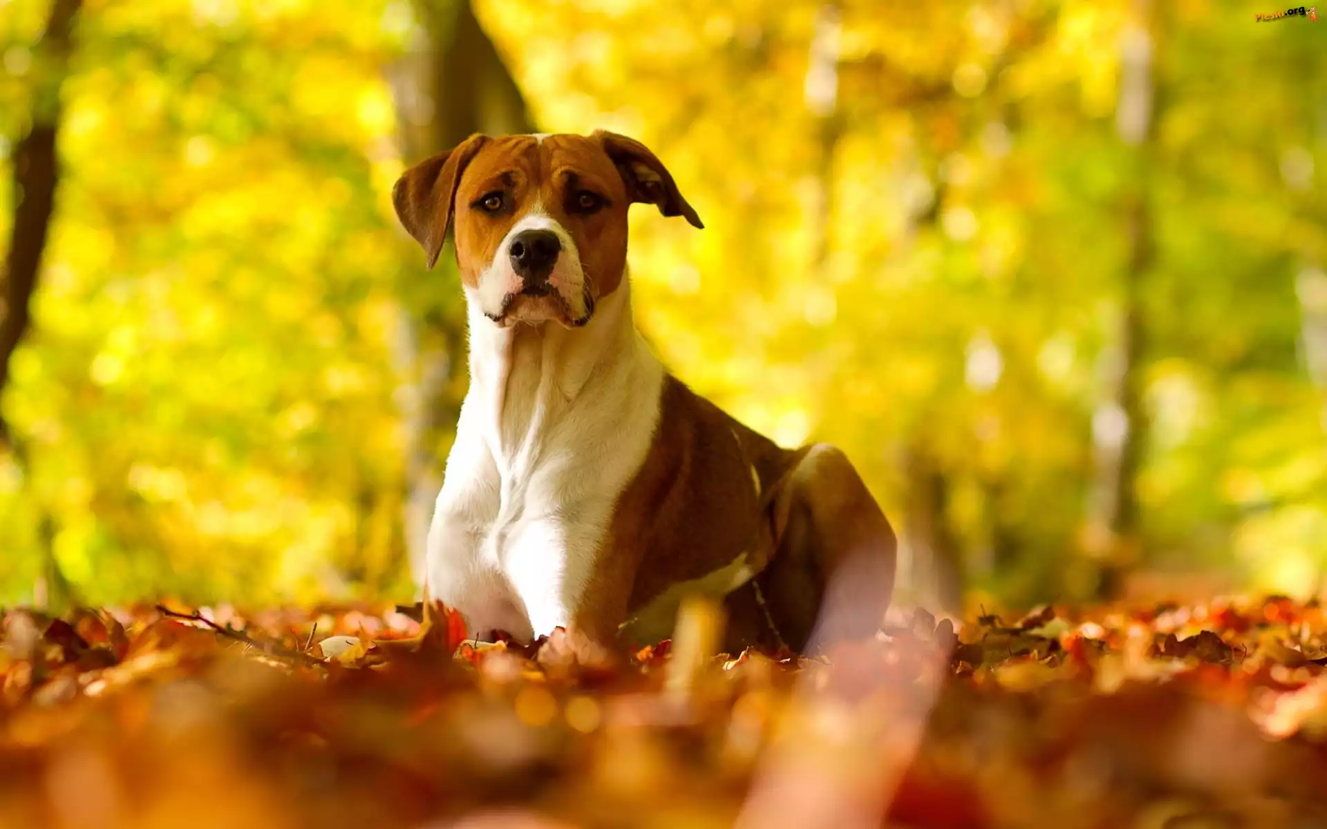 Pit Bull Terrier, Jesienne, Liście, Pieski