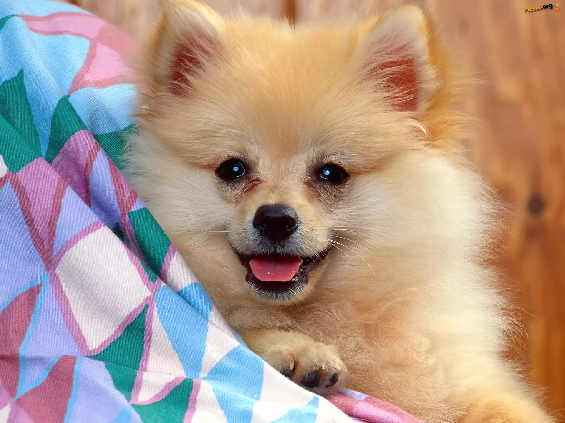 Kolorowy, Beżowy, Mały, Piesek, Kocyk