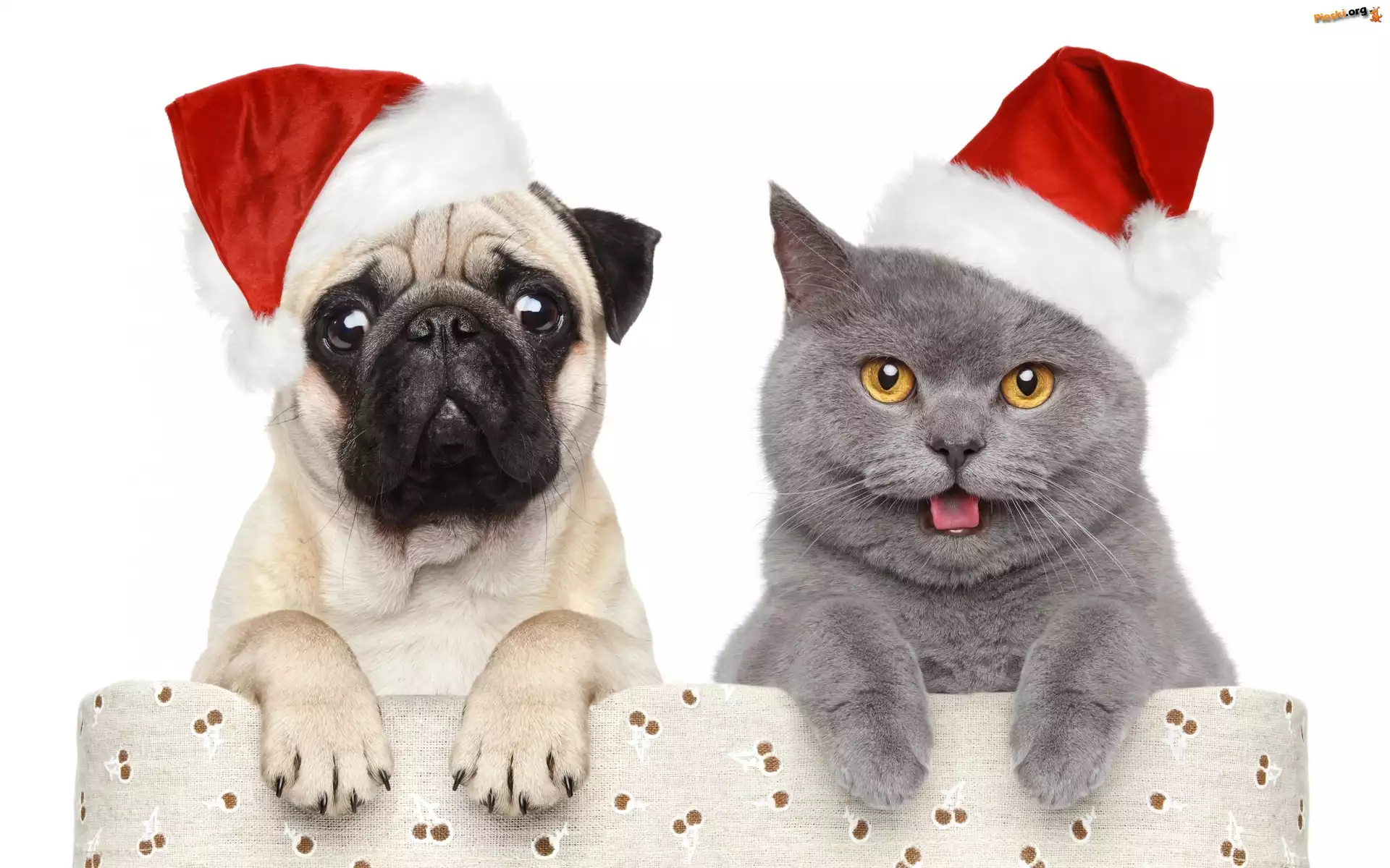 Świąteczne, Pies, Kot, Czapki