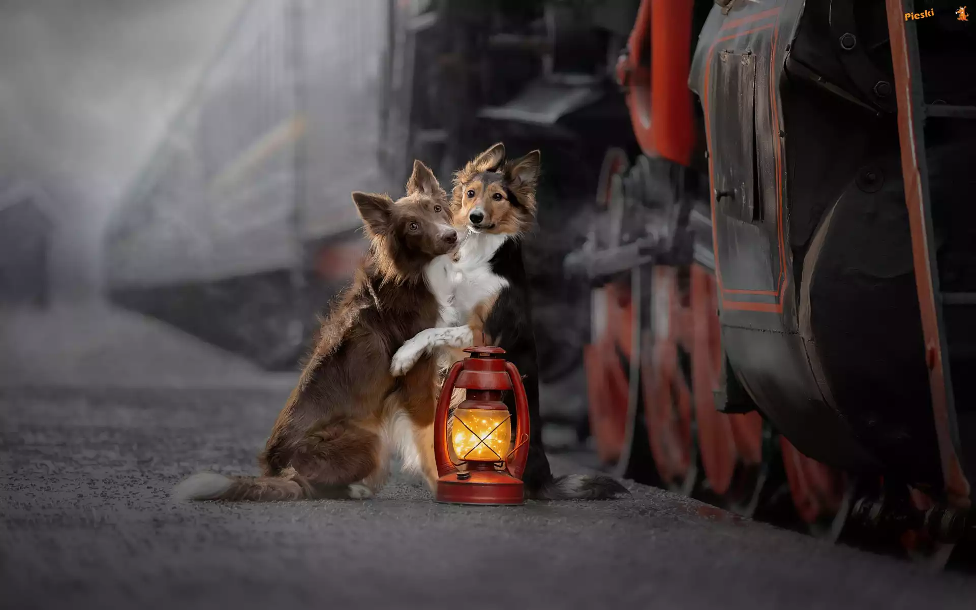 Lampa, Psy, Dwa, Border collie, Pociąg, Pieski