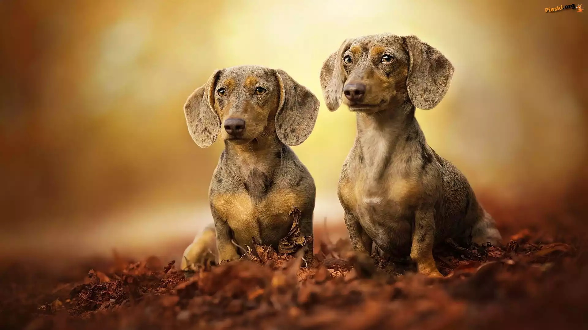 Liście, Dwa, Psy, Jamniki, Rozmyte tło