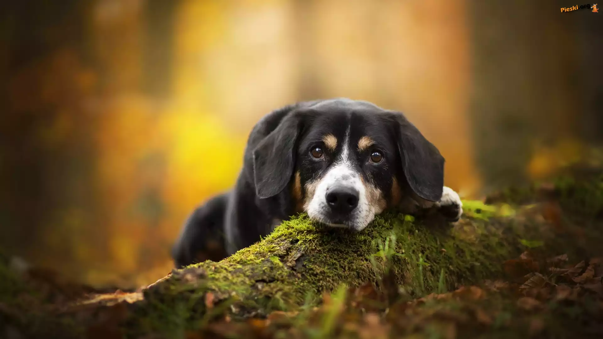 Ściółka, Entlebucher, Pies, Mordka, Mech