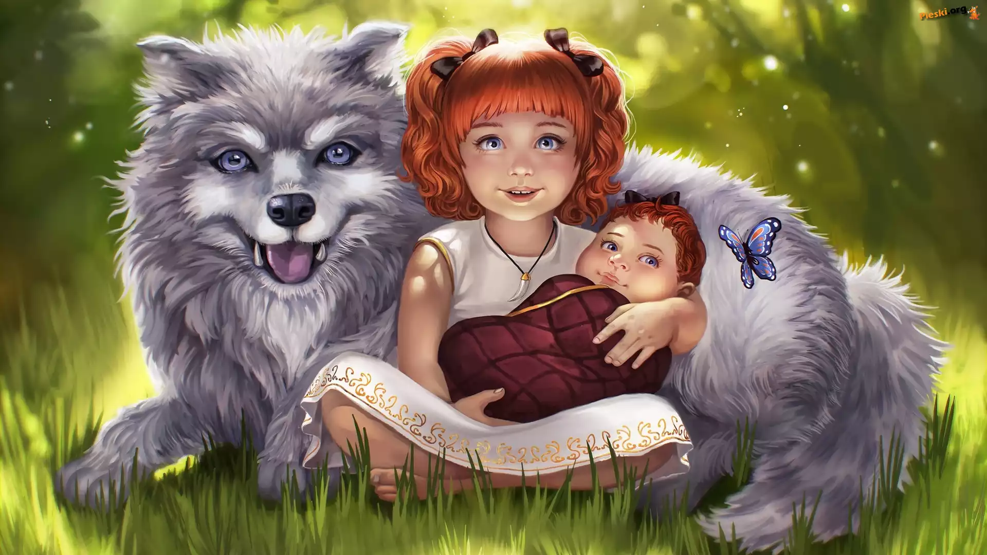 Motyl, Dzieci, Pies, Grafika 2D, Pieski