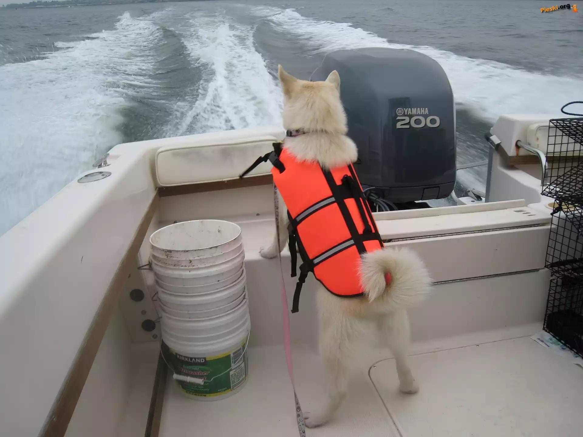 Przyczajony, Norsk Buhund Ziewający, Norsk Buhund Norsk Buhund, pomarańczowy, kapok Norsk Buhund, kapok Norsk Buhund, fale, motorówka Norsk Buhund, zima