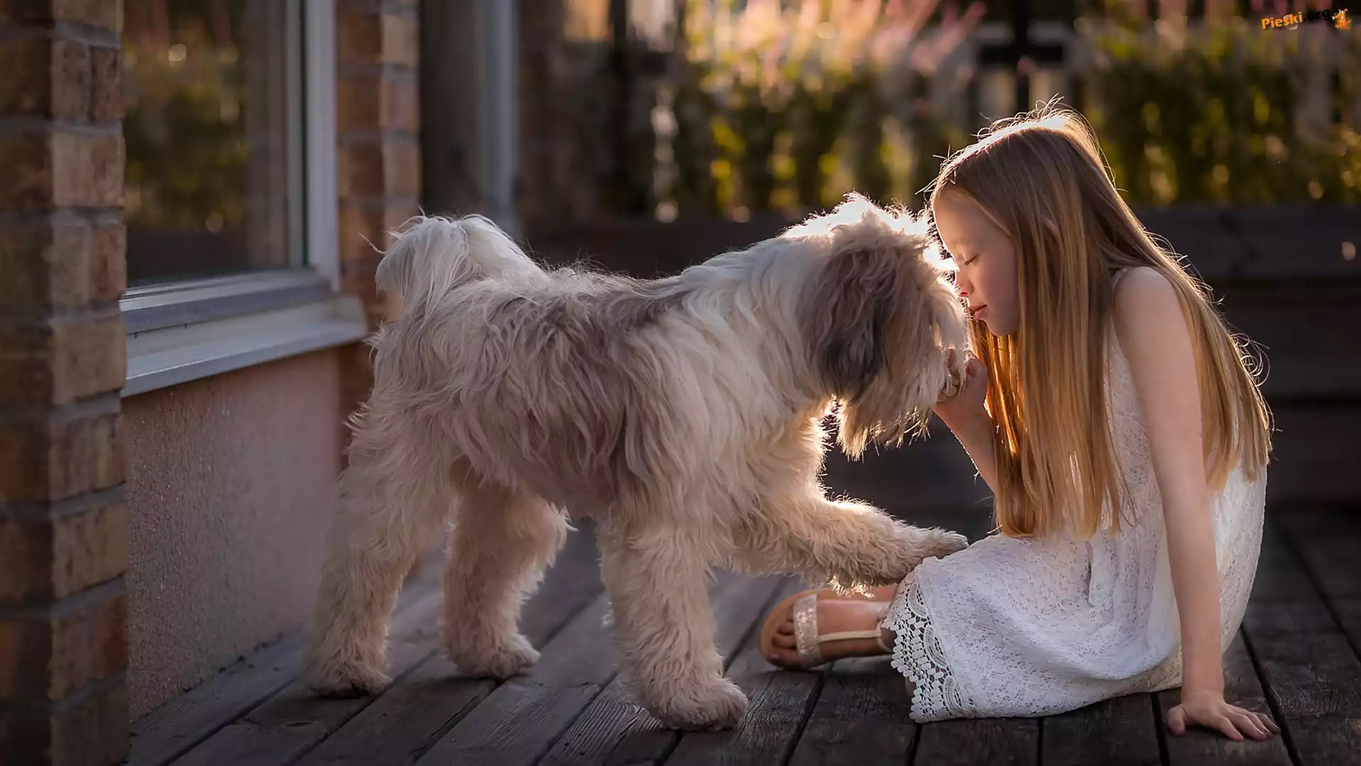 Terier Tybetański Okno, Terier tybetański, Pies, Dziewczynka, Taras