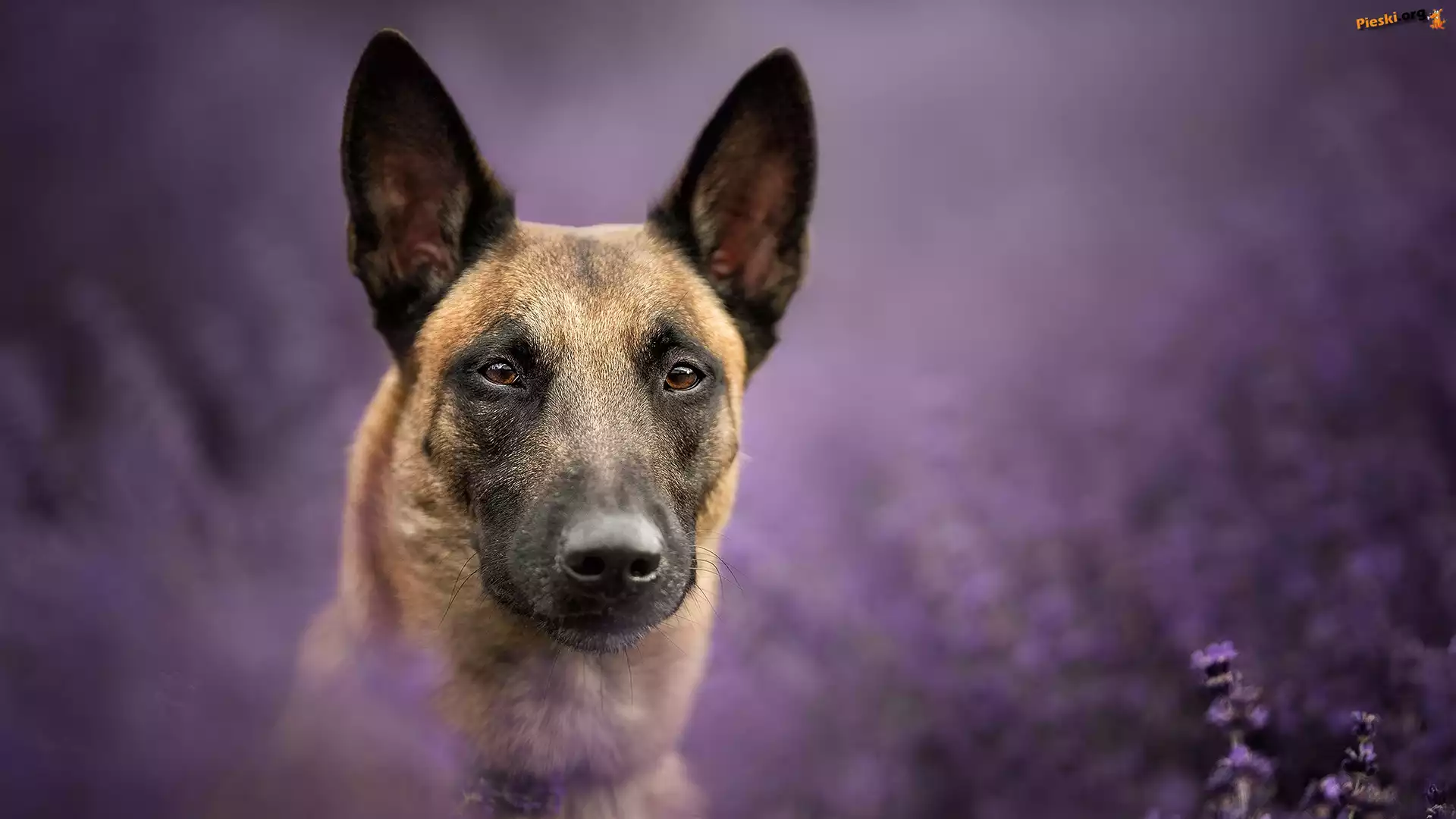 Rozmyte, Owczarek belgijski Malinois, Pies, Mordka, Tło Owczarek belgijski Malinois, Pies, Mordka, Kwiaty Wrzosy, Pies, Rozmyte, Mordka, Owczarek belgijski malinois, Jęzor, Tło