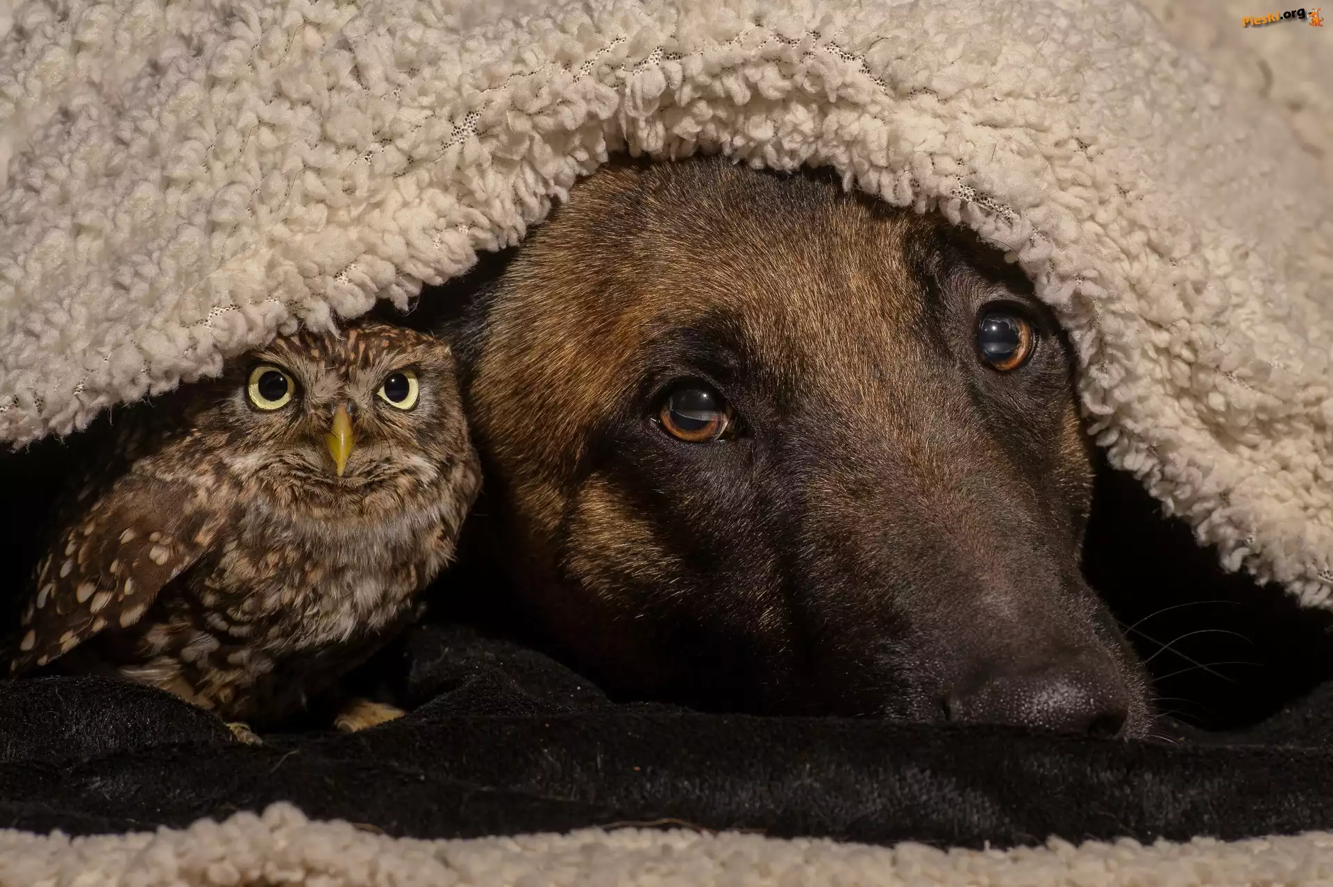 Owczarek niemiecki, sowa, koc