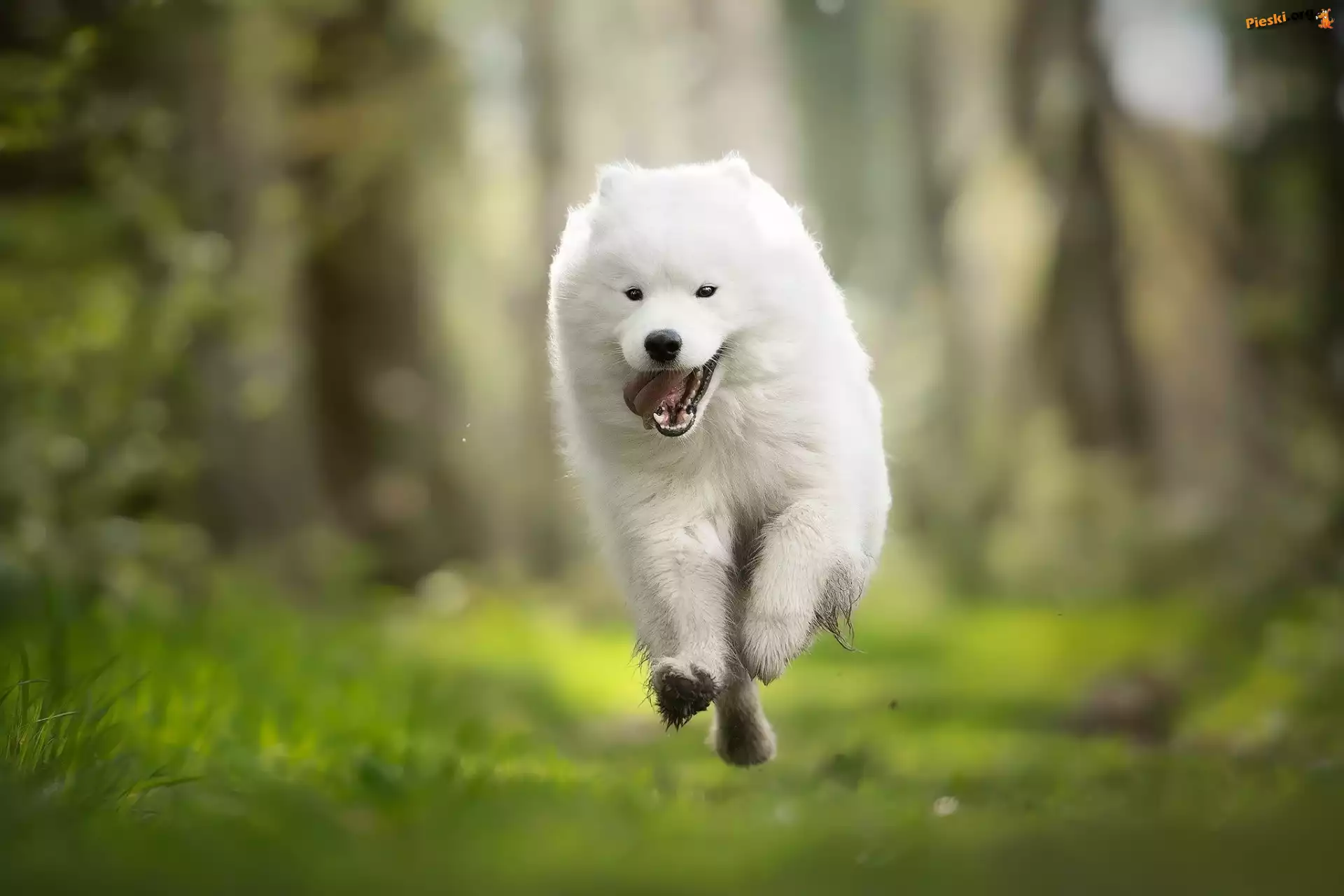 Samojed, Ogród Szczeniak, Piesek, Biały, Liście zima, Samojedy, dwa Kwiaty, Pies, Biały, Samojed, Zbliżenie Samojed, widok Biały, Mordka, Język, Pies, Samojed, Zabawka Samojed, Biały, Pies, Wodospad Szczeniak, Samojed Samojed, choinka Samojed, Ogród Pies, Samojed, Łąka młody, Samojed głowa, Samojeda słodki, szczeniak, Samojed