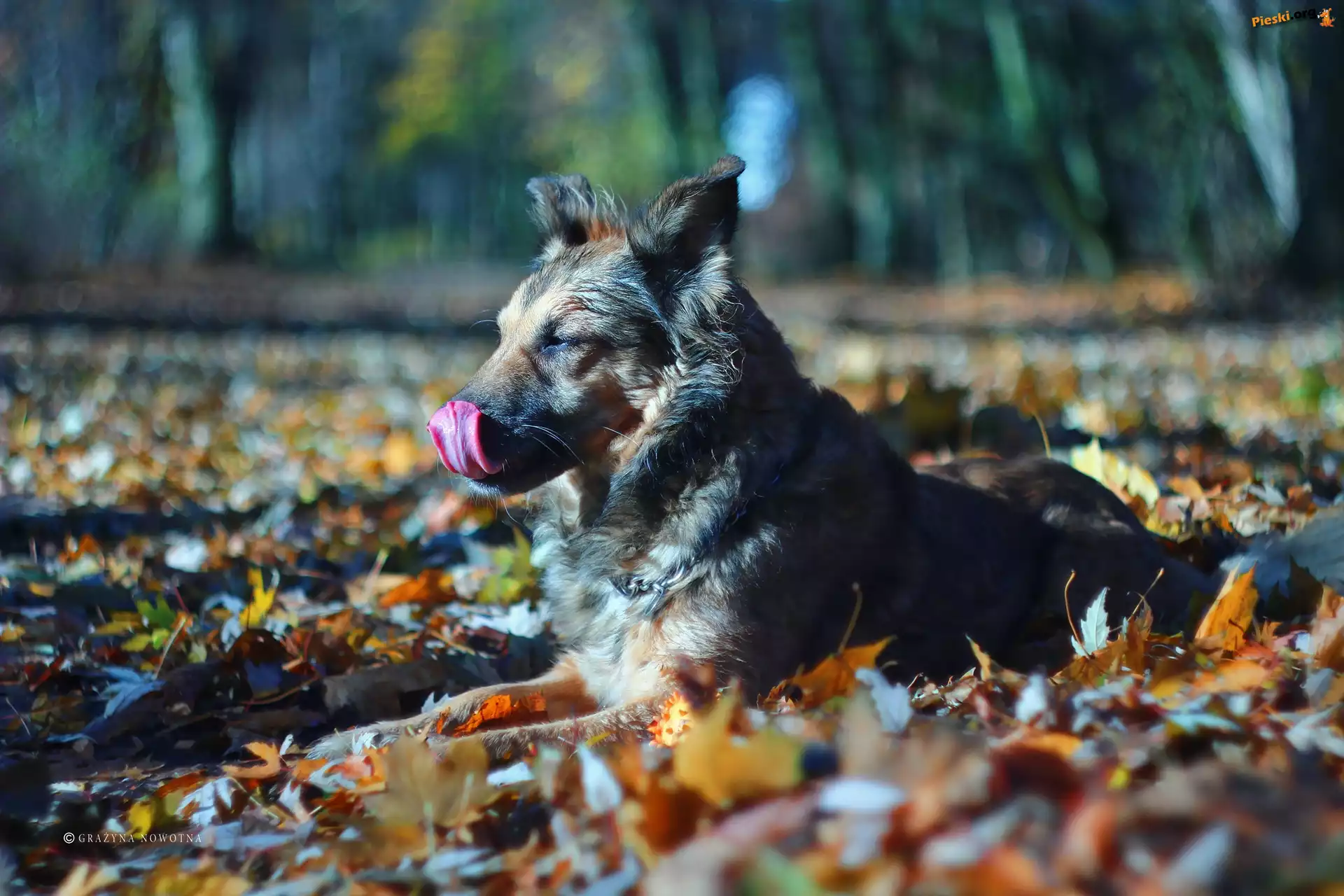 Pies, Liście, Kundelek, Suczka, Shila, Jesień