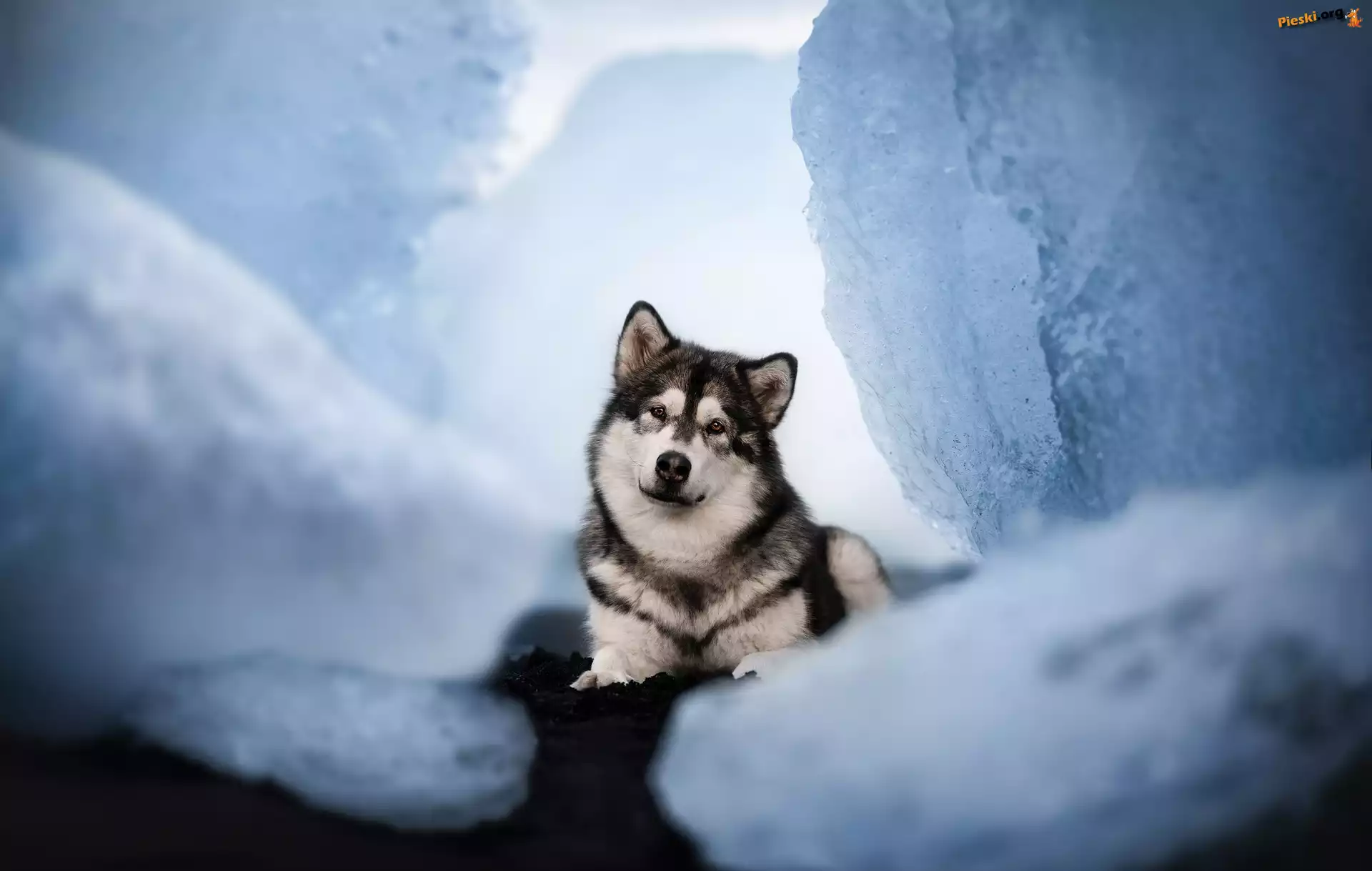 Spojrzenie, Alaskan malamute, Pies, Pieski