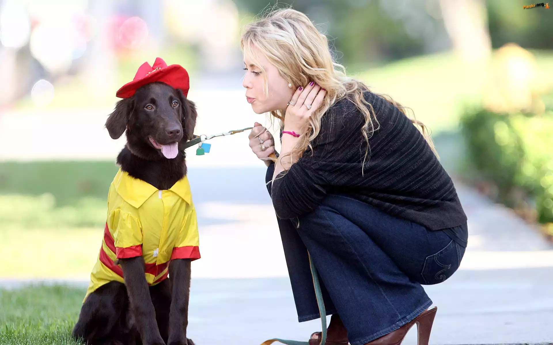 Kobieta, Piesek, Kapelusik, Pieski
