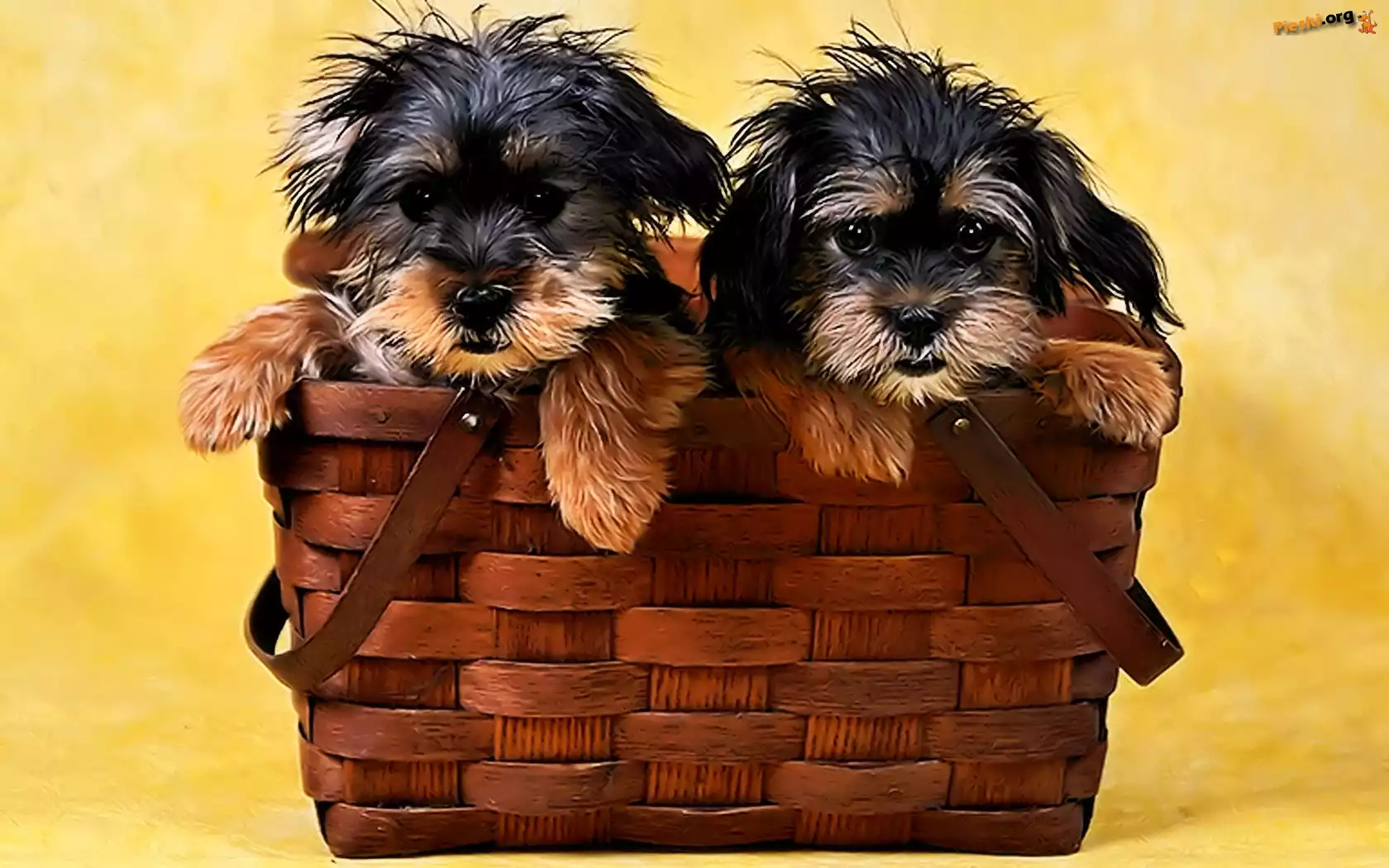 Pieski, Dwa, Słodkie, Koszyk, Pieski