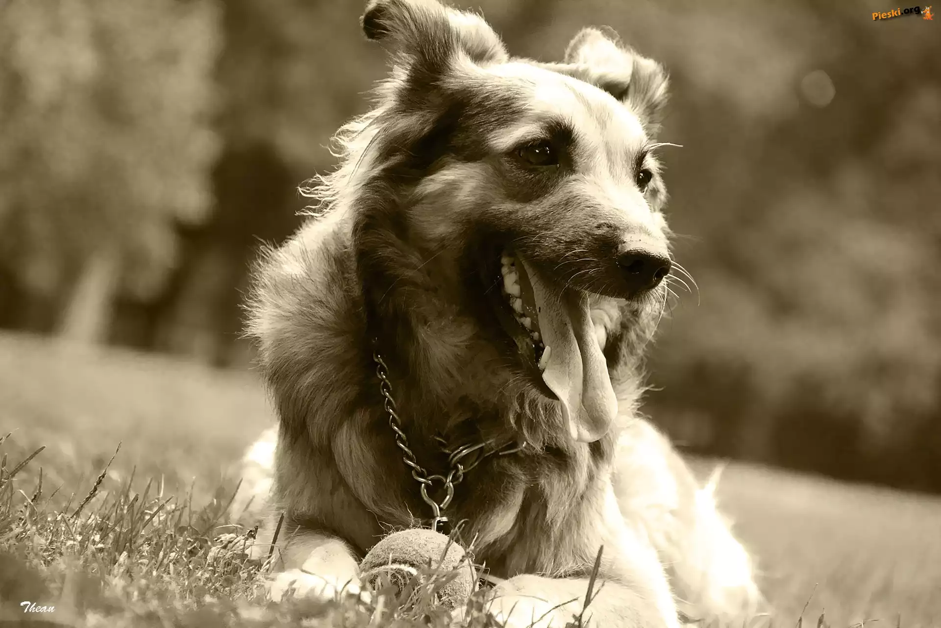 Pies, Piłeczka, Sepia