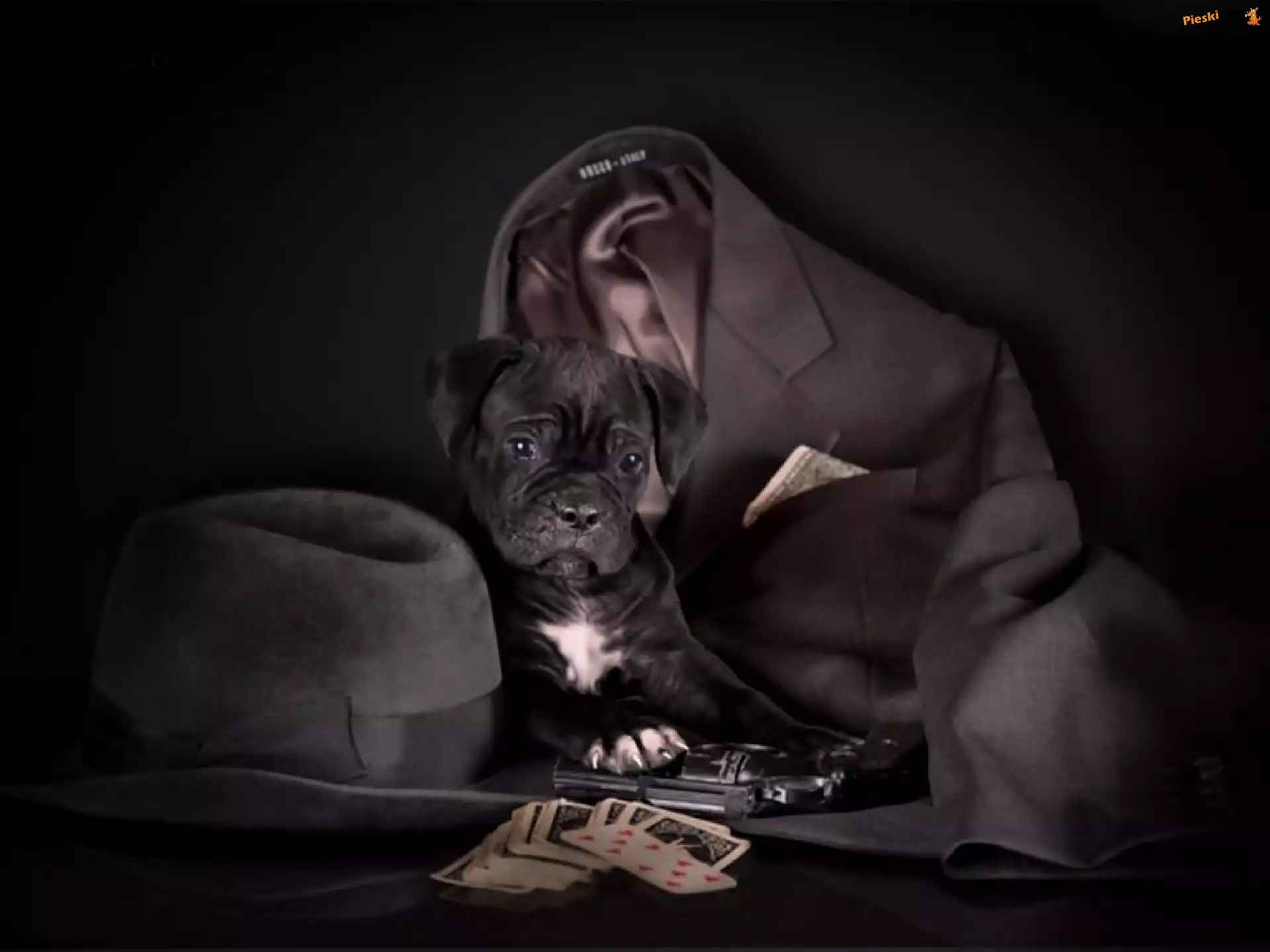 Pistolet, Kapelusz, Szczeniak, Marynarka, Karty, Pieski