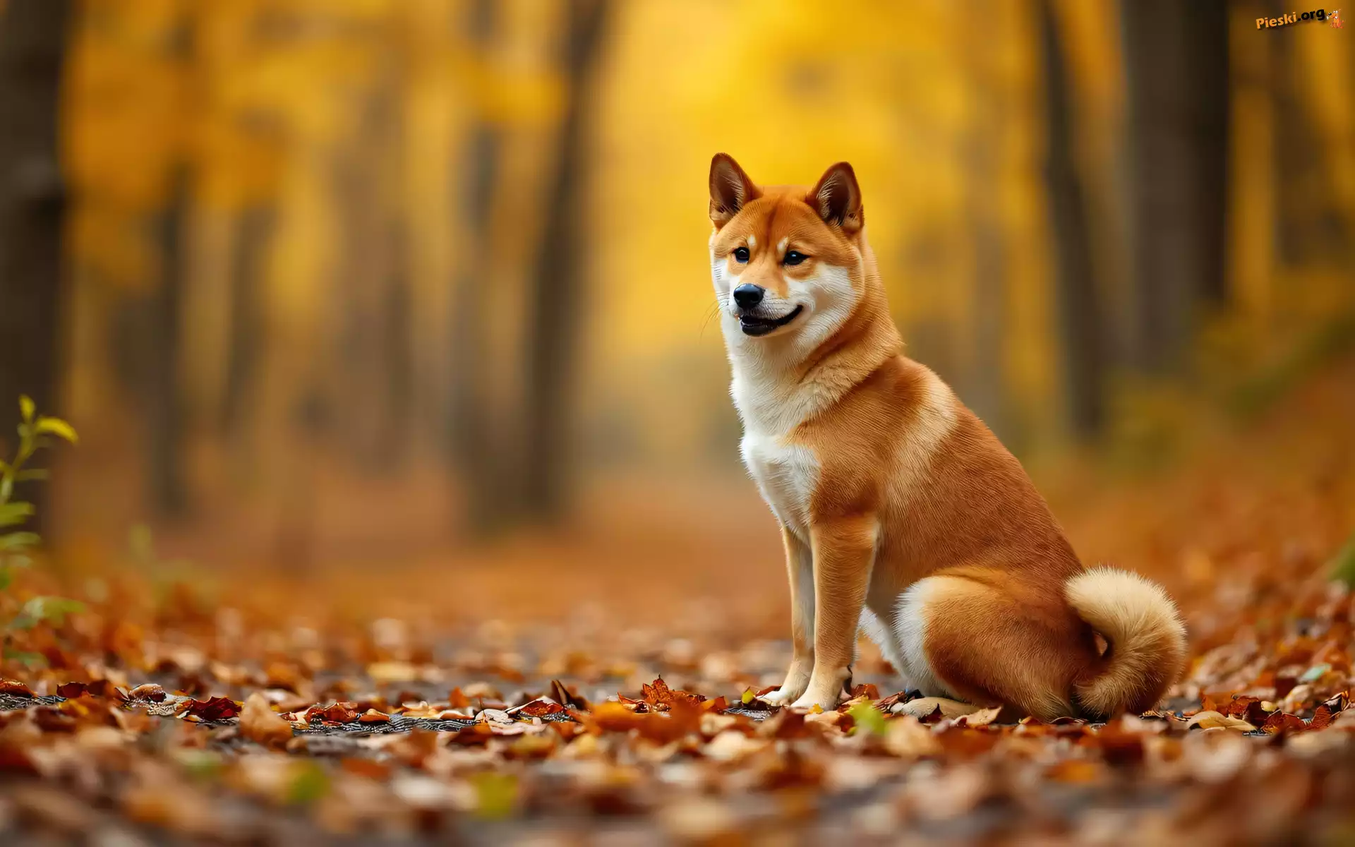 Pies, Grafika AI, Pożółkłe, Shiba inu, Liście, Pieski