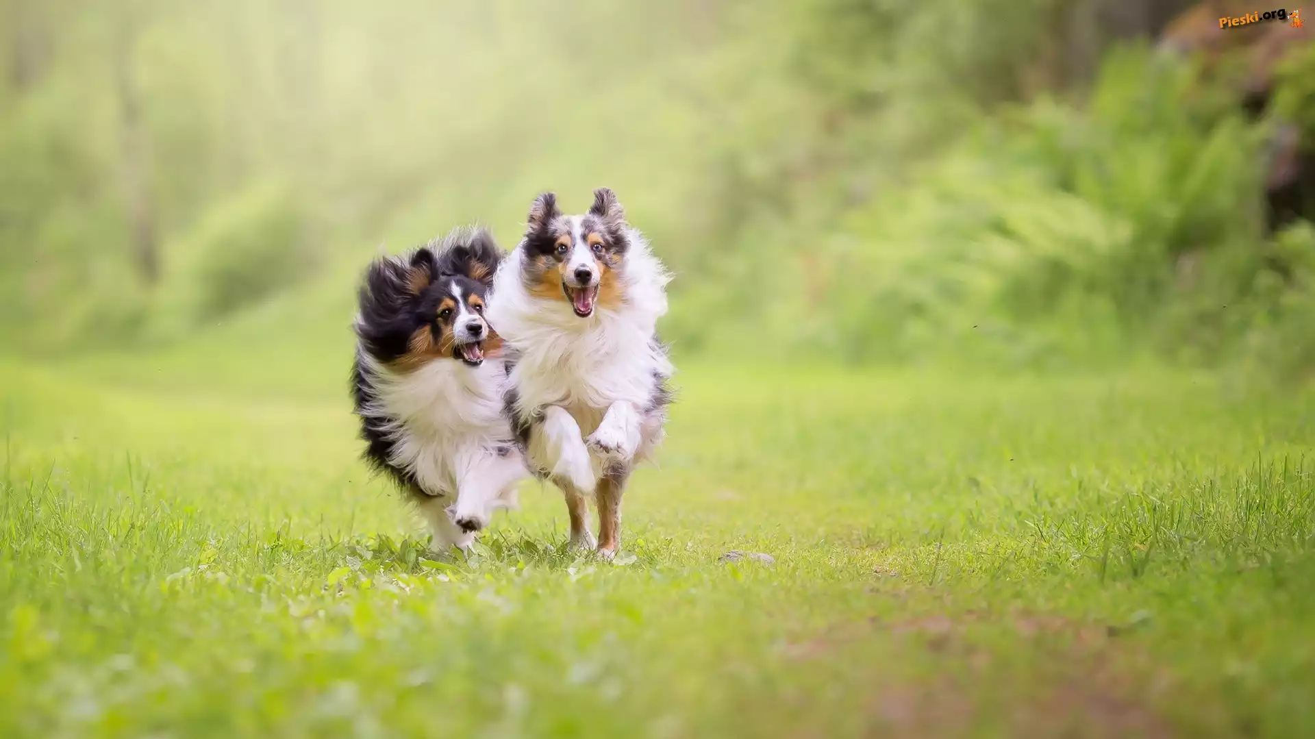 Psy, Biegnące, Owczarki szetlandzkie, Pieski