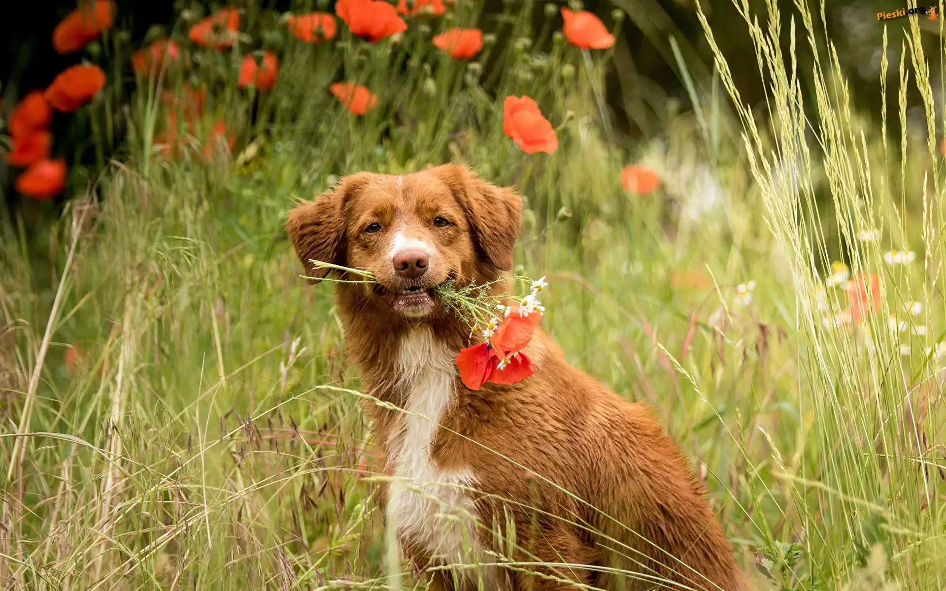 Maki, Pies, Retriever z Nowej Szkocji, Trawa Retriever z Nowej Szkocji, Pieski