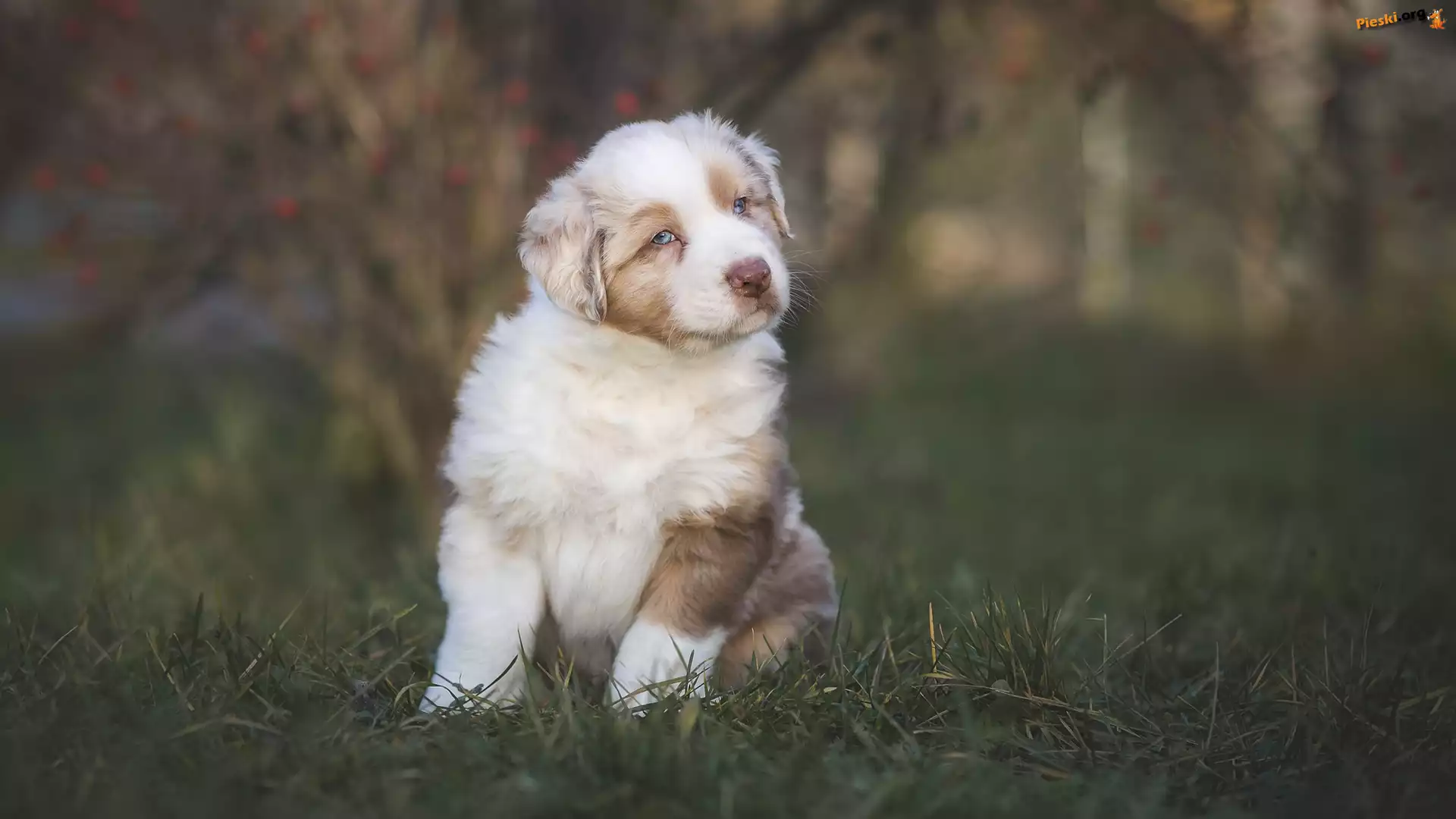 Pies, Rozmyte, Trawa, Szczeniak, Owczarek australijski, Tło, Pieski