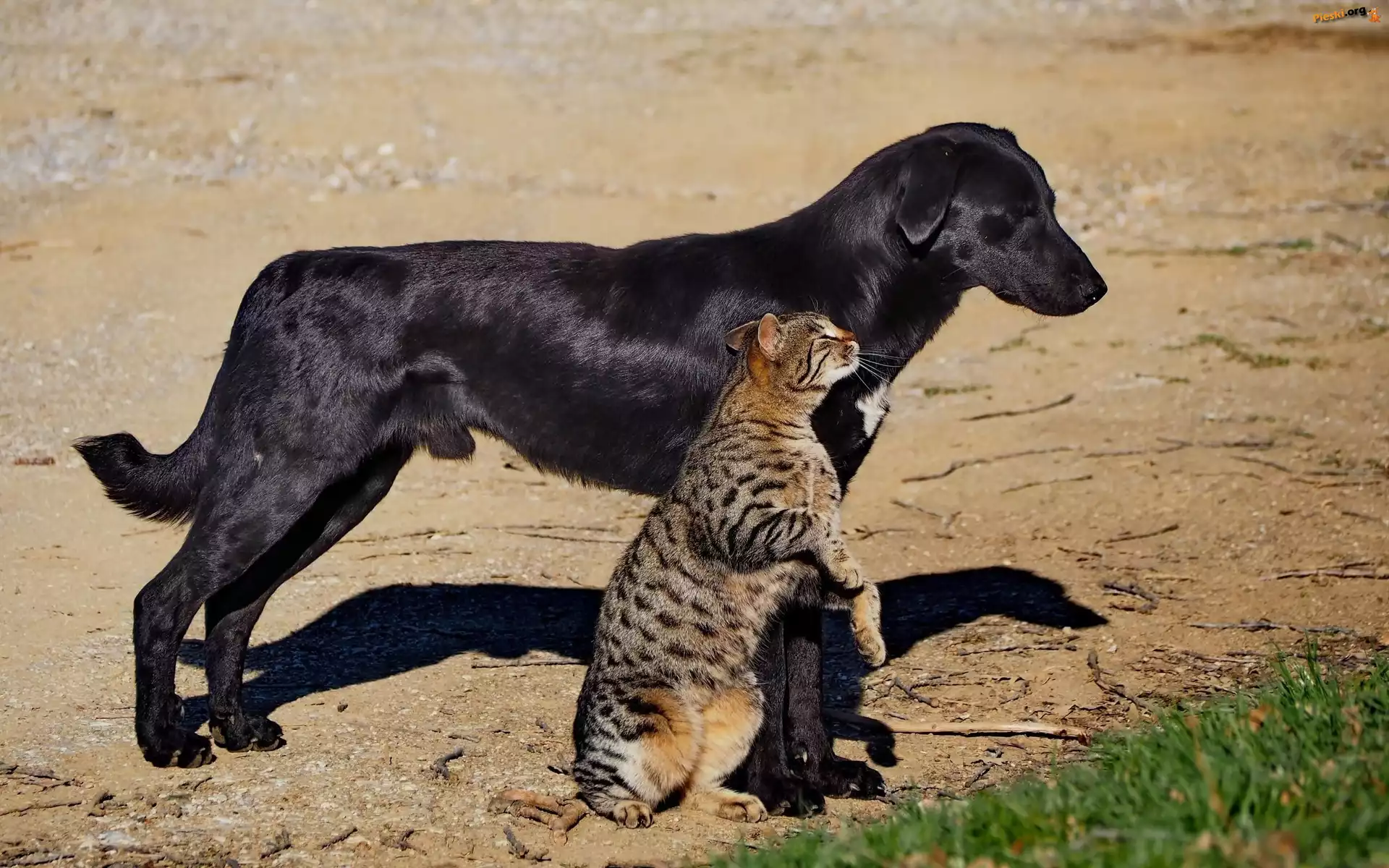 Spacer, Kot, Pies, Przyjaciele, Droga, Pieski