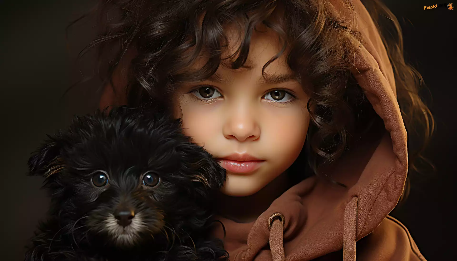 Grafika, Bluza, Kaptur, Spojrzenie, Dziecko, Pies, Szczeniak