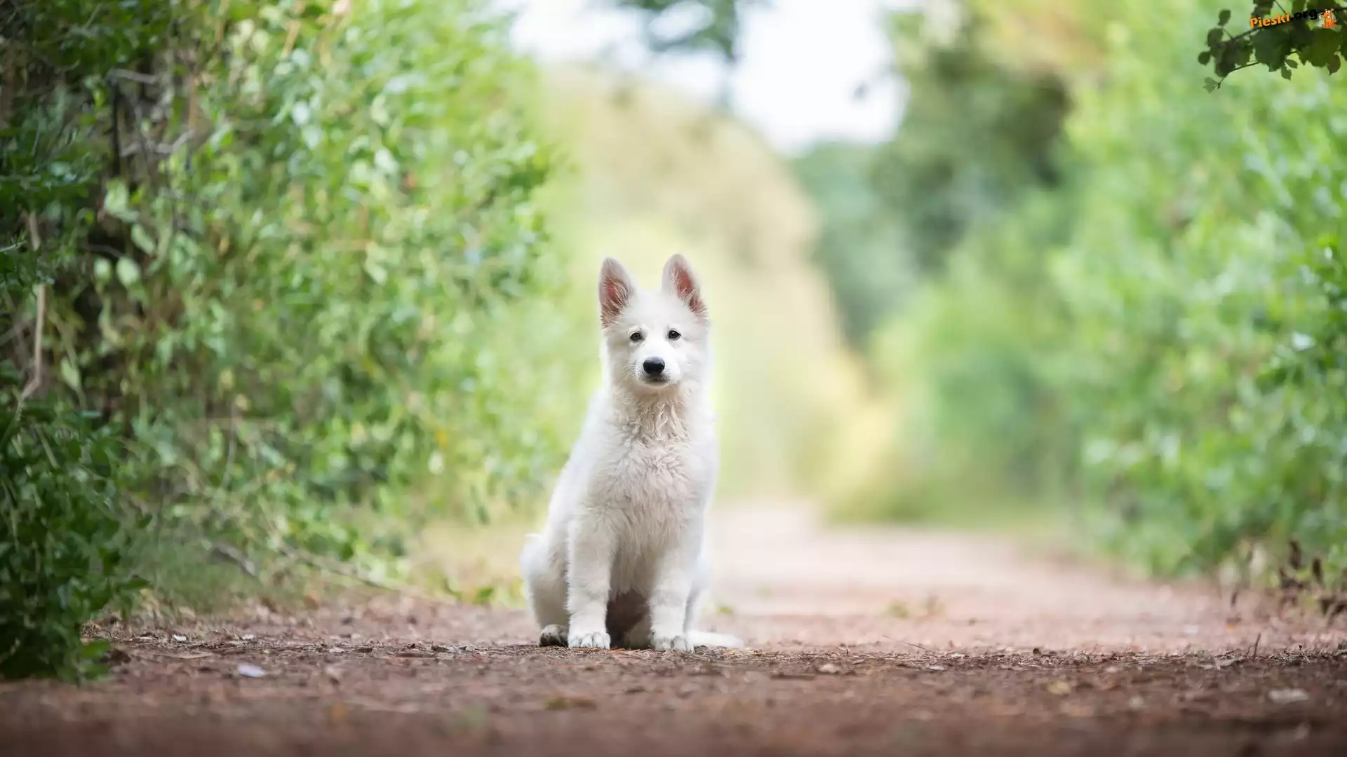 Krzewy, Szczeniak, Pies, Biały owczarek szwajcarski, Alejka