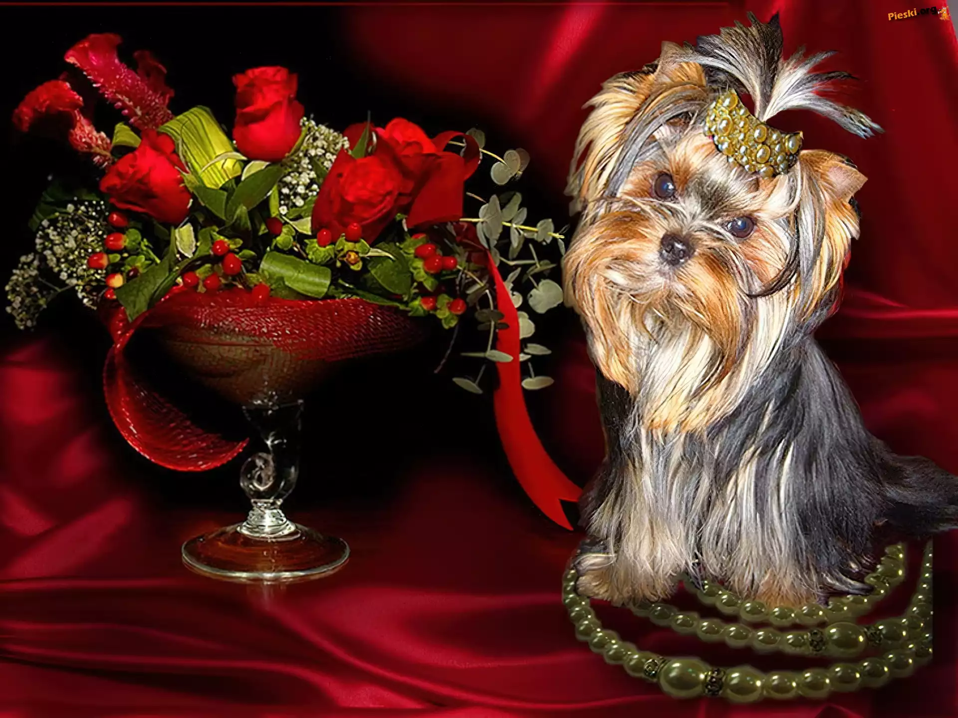 Pies, York, Róże, Pieski